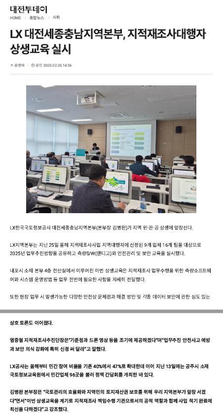 [대전세종충남] LX대전세종충남지역본부,지적재조사대행자상생교육실시