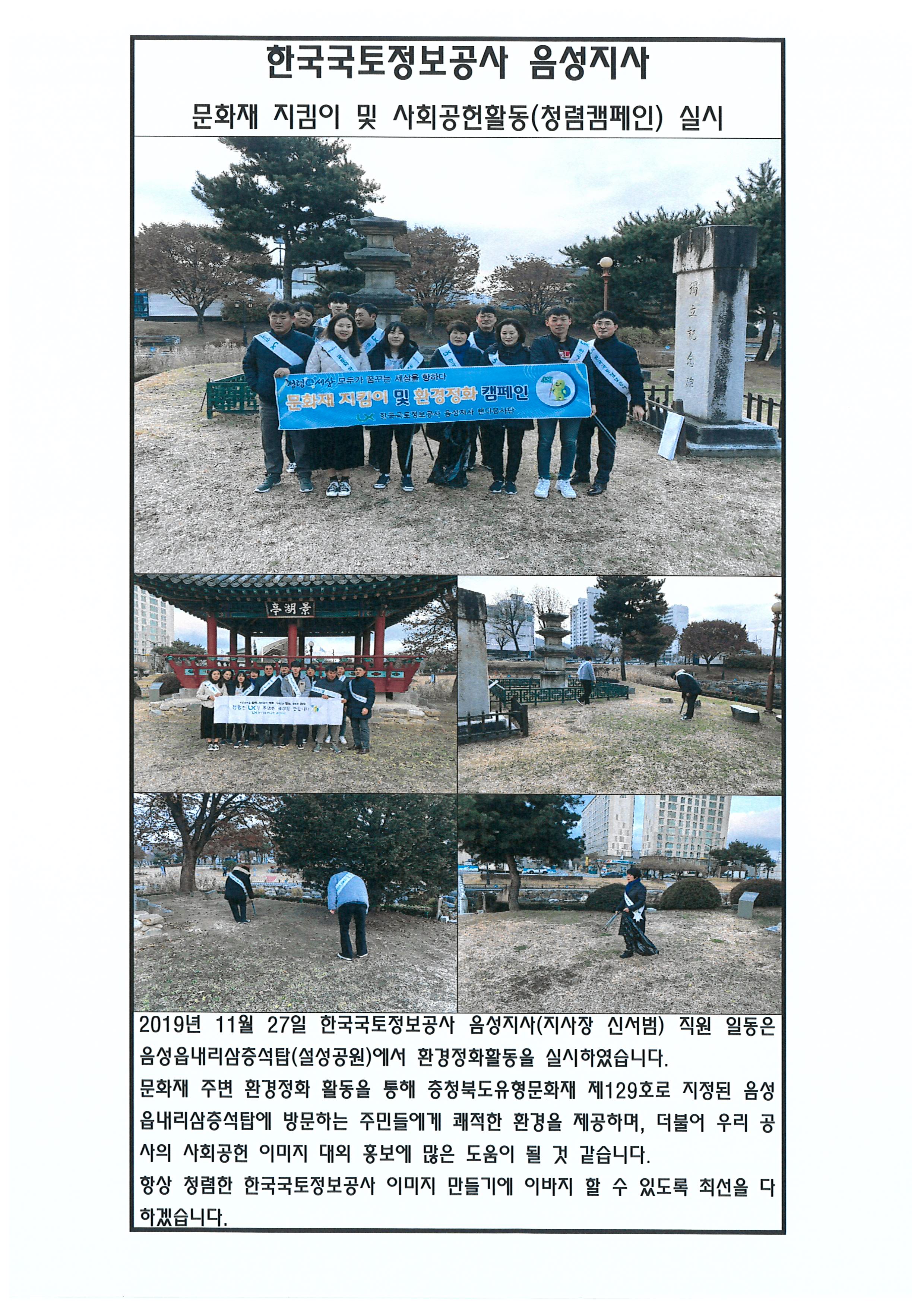 [LX충북지역본부 음성지사] 문화재 지킴이 및 사회공헌활동(청렴캠페인) 실시