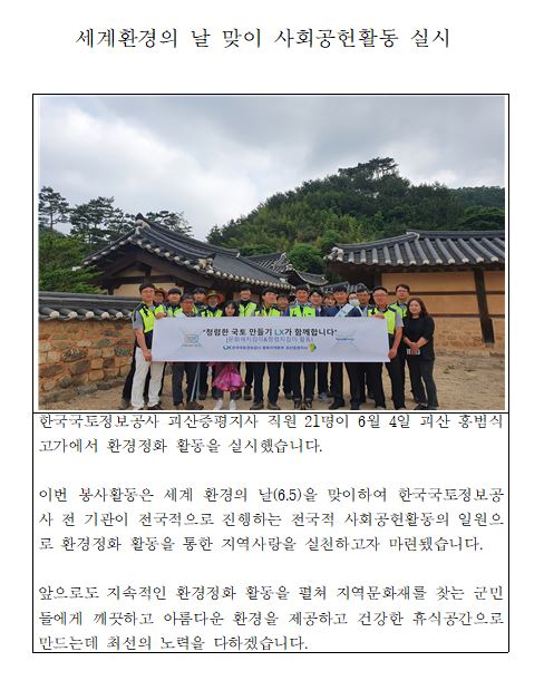[LX충북지역본부 괴산증평지사] 전 기관이 함께하는 기념일 맞이 환경정화활동 실시