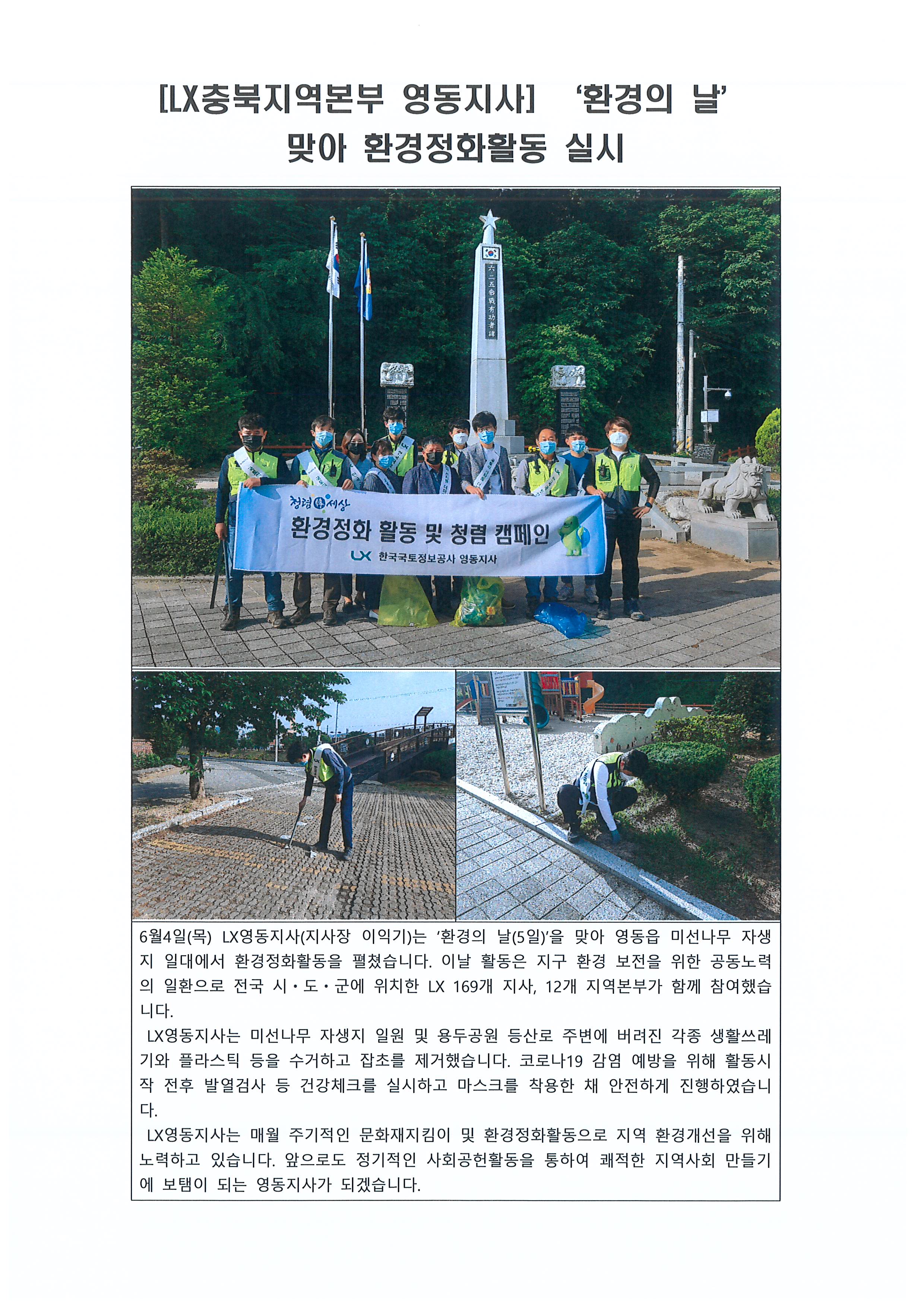 [LX충북지역본부 영동지사] 전 기관이 함께하는 기념일 맞이 환경정화활동 실시