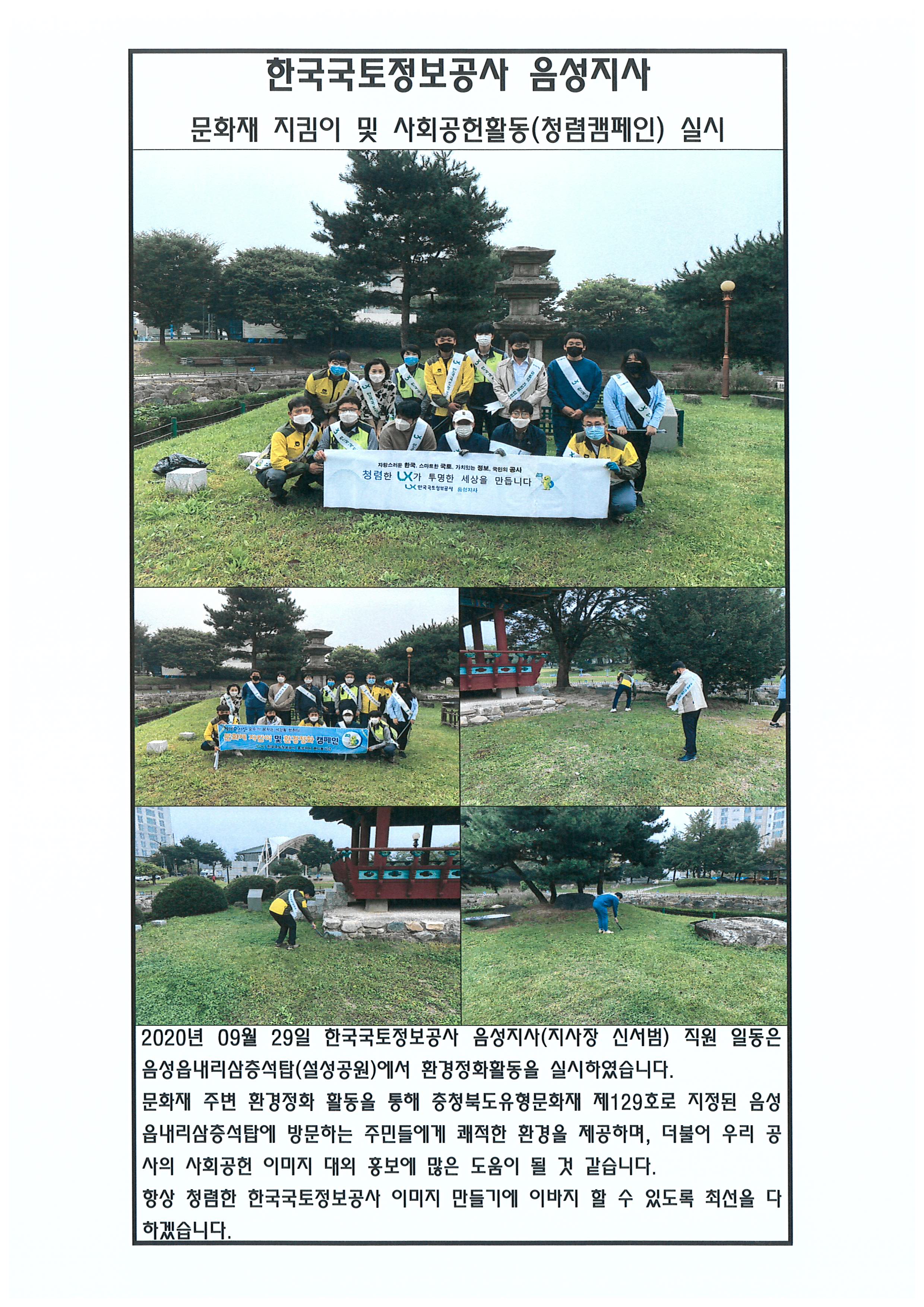 [LX충북지역본부 음성지사] 문화재 지킴이 및 사회공헌활동(청렴캠페인) 실시