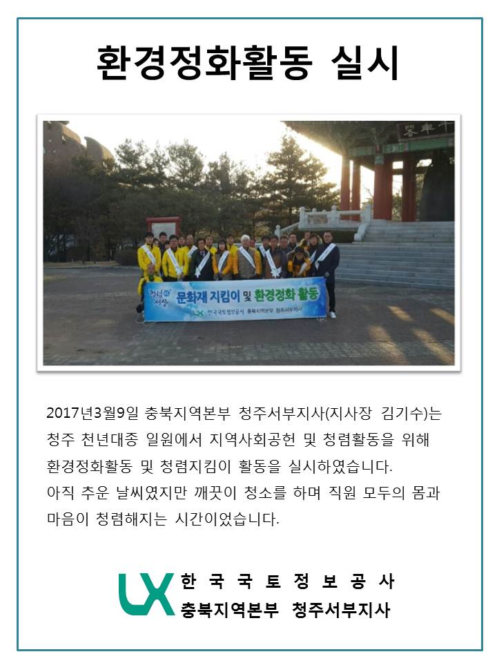 [충북지역본부 청주서부지사] 환경정화활동 실시