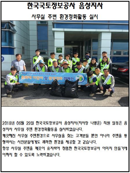 [충북지역본부 음성지사] 사무실 주변 환경정화 활동 실시