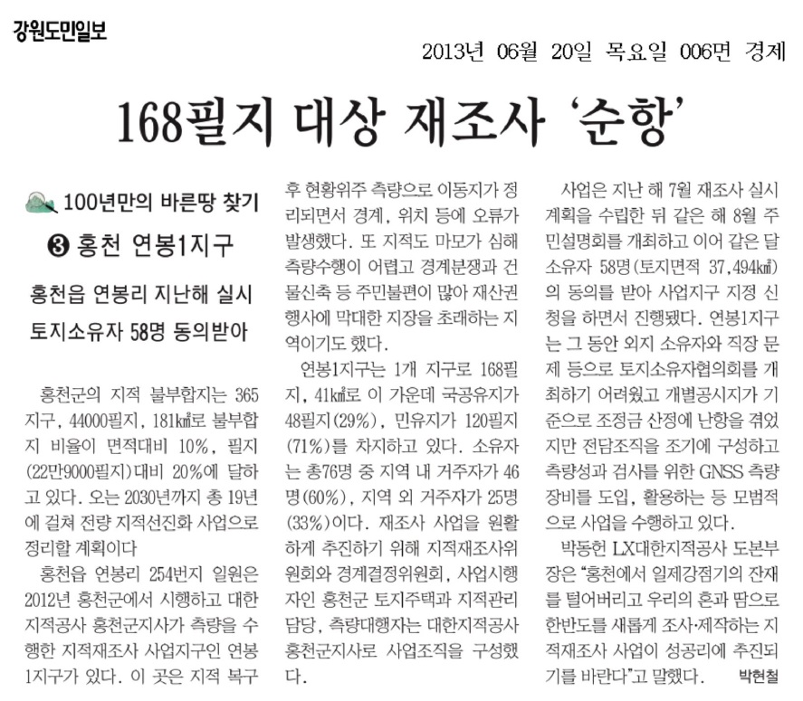 6월 20일에 지적재조사 시리즈 3편이 보도되었습니다.