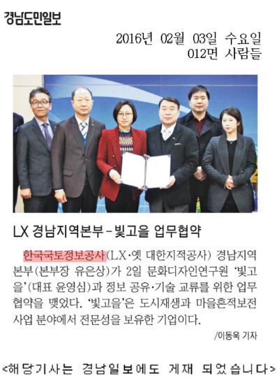 LX경남지역본부와 빛고을과의 업무협약 관련 보도자료입니다.