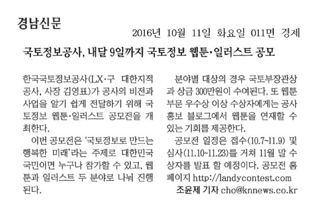 10월 11일자로 경남일보에 보도 된 공사 공모전 관련 보도자료입니다.