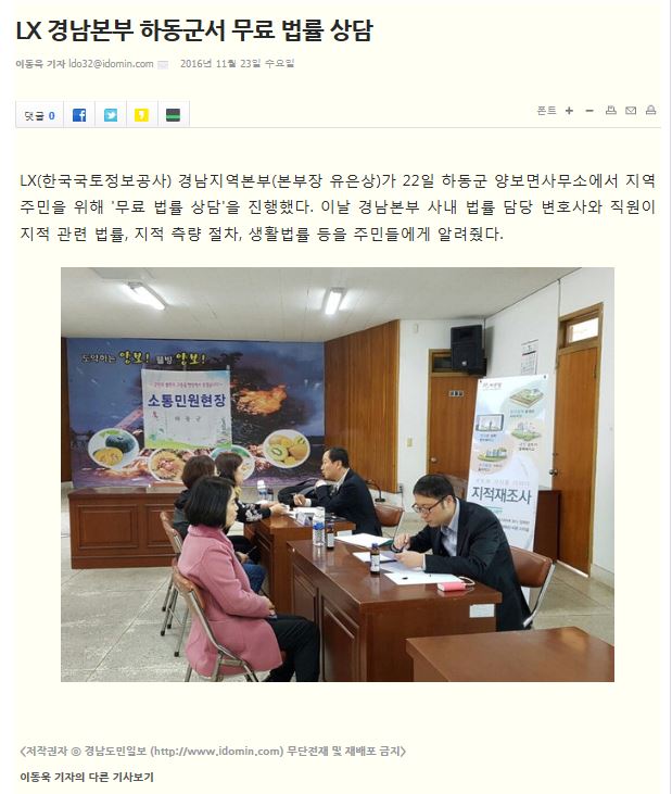 11월 23일 날짜로 경남신문 및 경남도민일보에 보도된 무료법률상담 관련 기사입니다.