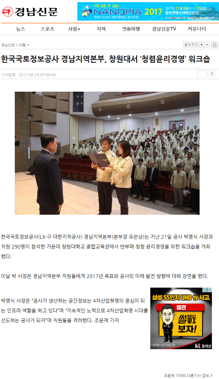 경남지역본부 윤리경영 워크숍 관련 보도자료입니다.