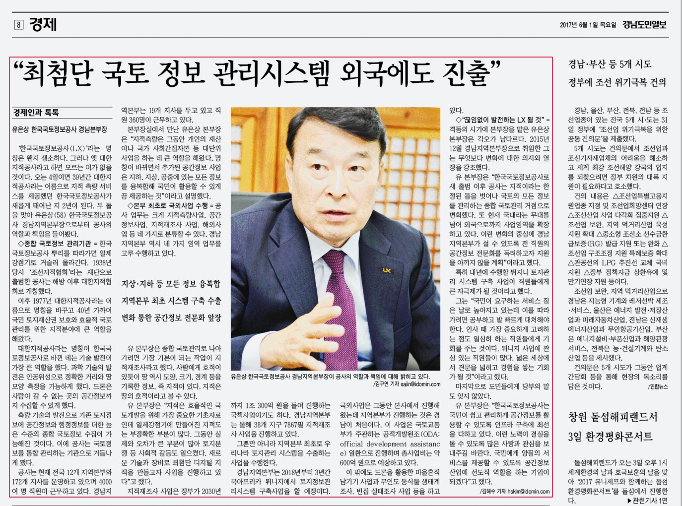 유은상 본부장 신문 인터뷰