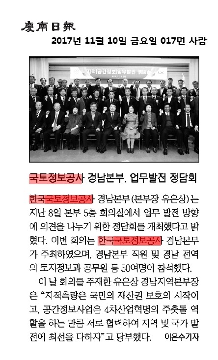 경남지역본부는 11월 8일 공간정보업무 등의 발전을 위한 정담회를 주최하였습니다. 이 날 행사는 경남지역본부 직원들과