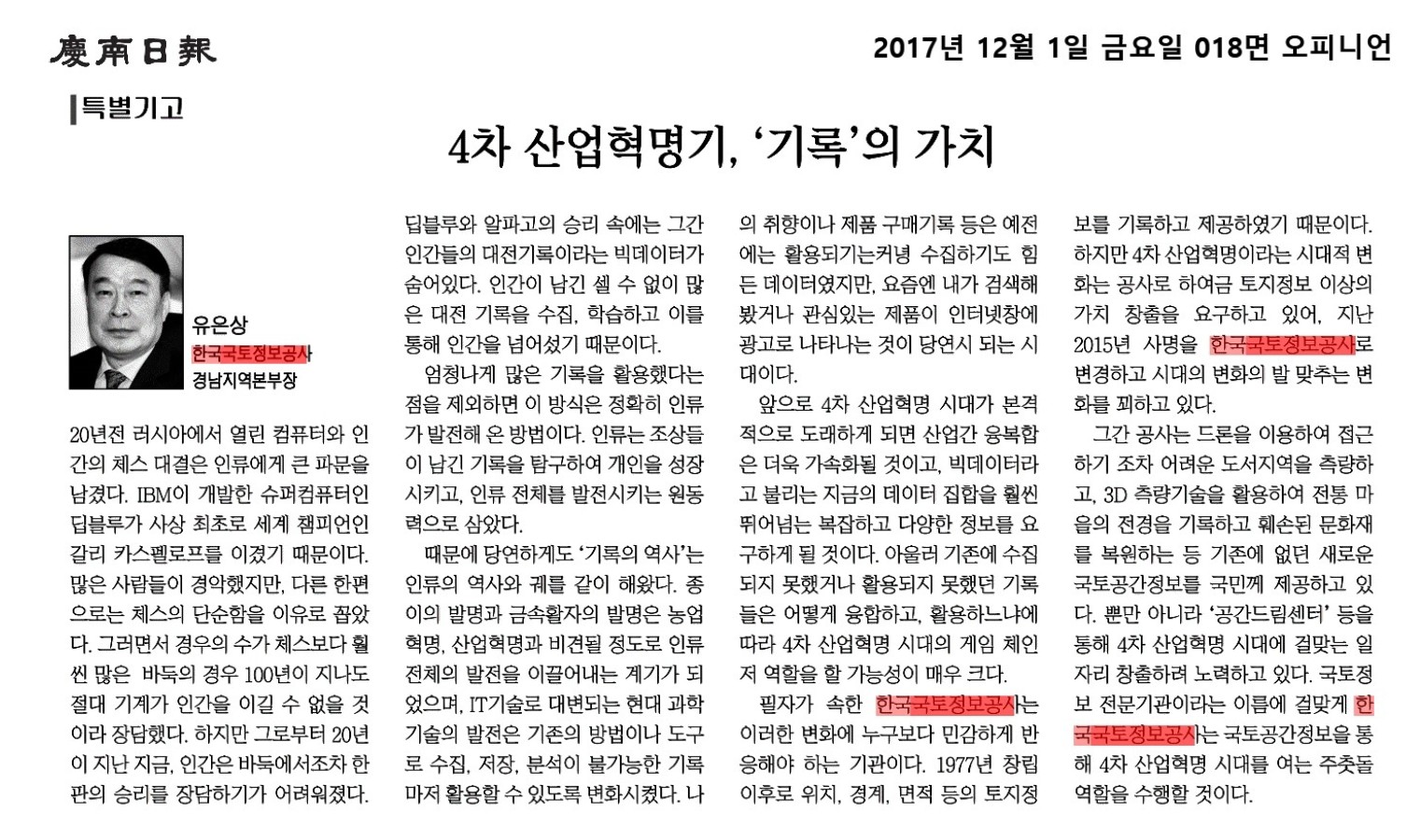 [LX경남지역본부] 유은상 본부장 기고문 게재