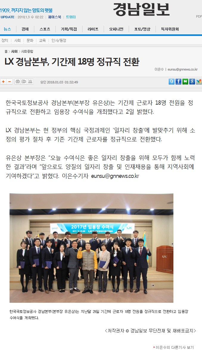 [LX경남지역본부] 정규직 전환 및 임용장 수여