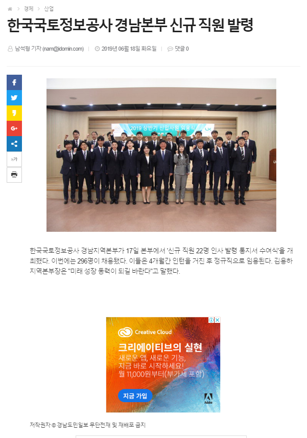 2019.06.18. 경남도민일보에 LX경남본부 신규직원 발령 관련 보도자료가 게재되었습니다.