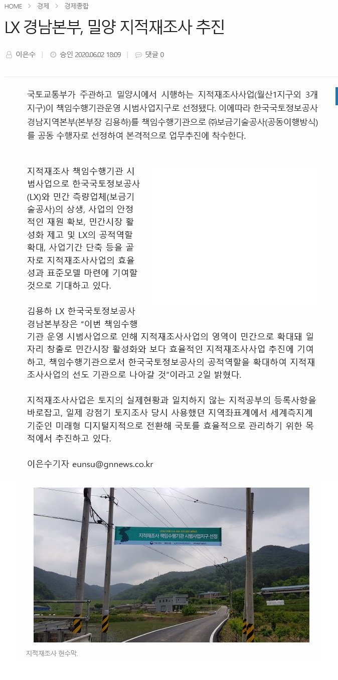 LX경남지역본부, 밀양 지적재조사 사업 착수