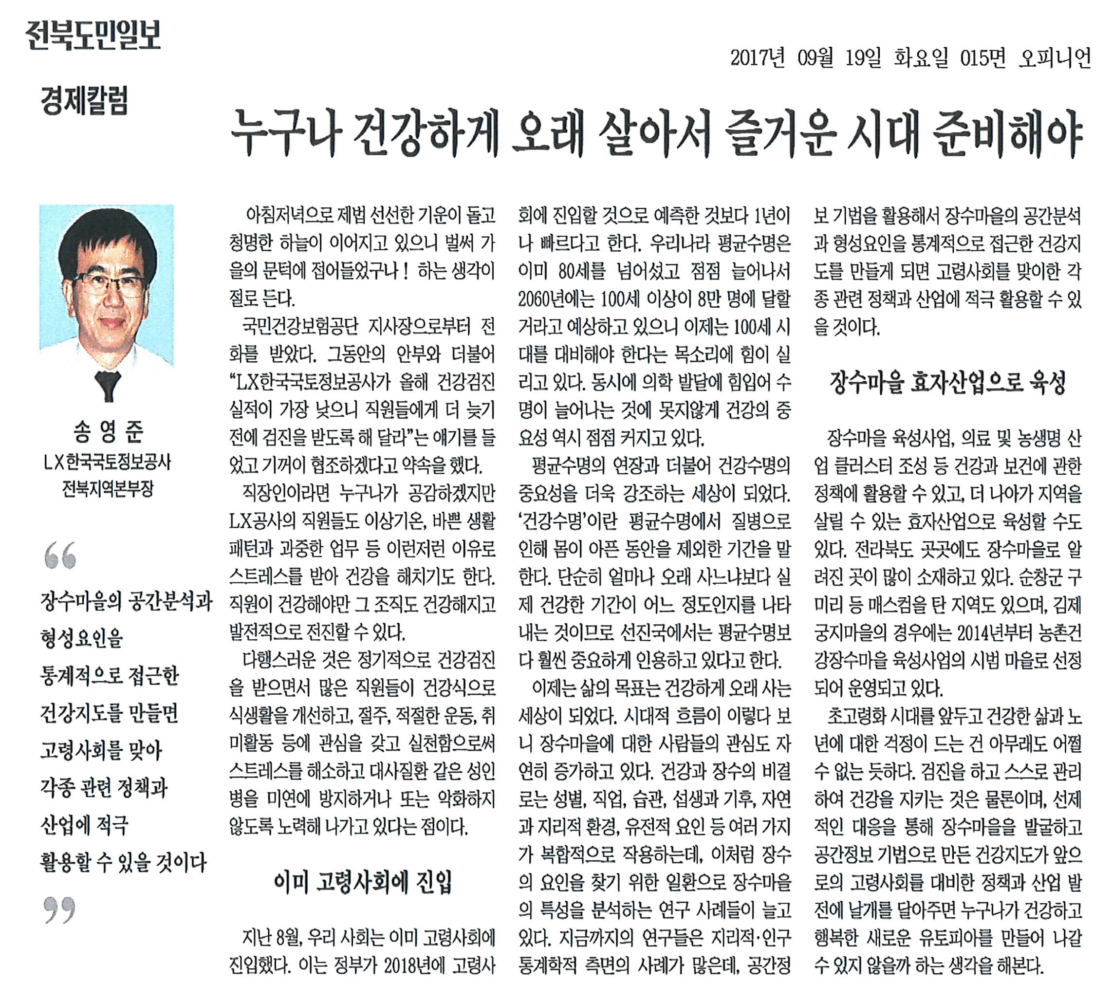 장수마을이 가지고 있는 자연과 지리적환경, 특성 등 장수마을의 요인을 찾아 공간정보 기법으로 분석하고 연구할 수 있는 건강지도를 만들어